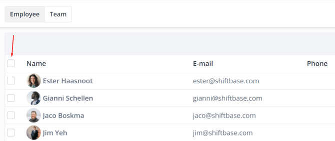 With a Bulk action, it is possible to Send a message to multiple employees at once.