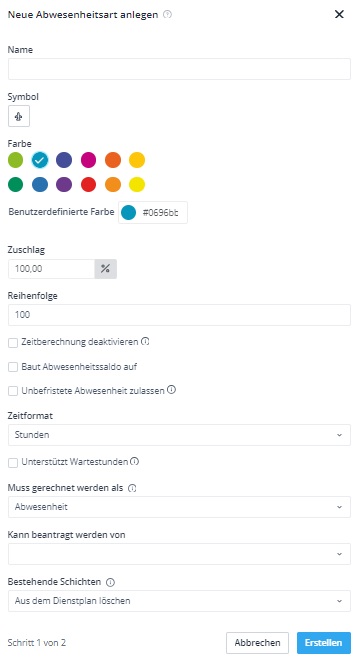 - Muss gerechnet werden als: Hier kannst du zwischen Abwesenheit und Fehlzeit wählen.