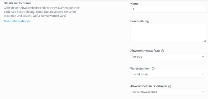 - Name: Der Name der Abwesenheitsrichtlinie.
