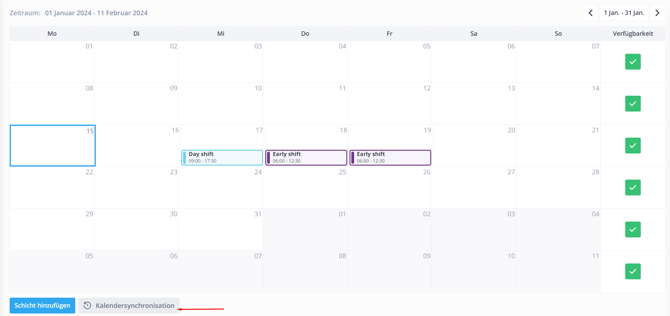 Mitarbeiter können ihren Dienstplan auch synchronisieren, indem sie über die Übersicht auf den Reiter Mein Dienstplan gehen, unter dem Dienstplan ist eine graue Schaltfläche für die Kalendersynchronisation sichtbar.