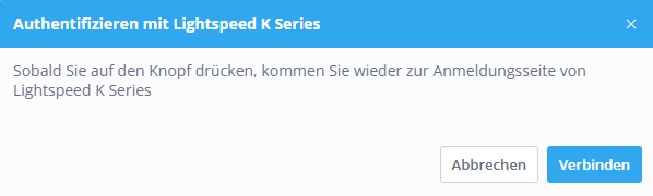 Nachdem du auf Installieren geklickt hast, musst du dich authentifizieren. Der folgende Bildschirm wird angezeigt, auf dem du auf Verbinden klicken kannst. Du wirst zur Anmeldeseite von Lightspeed weitergeleitet.