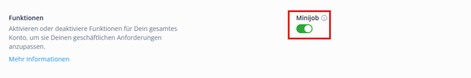 Wenn man die Minijob-Funktion nutzen möchte, muss diese in den Einstellungen > Allgemein aktiviert werden: