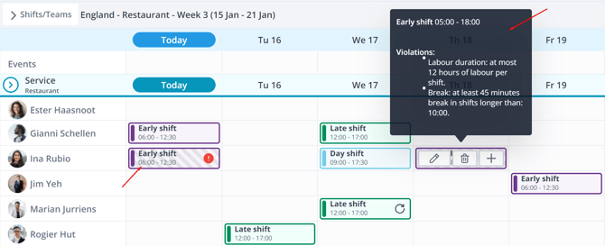 By hovering your mouse over such a shift, you can determine whether it is a conflict or a violation.