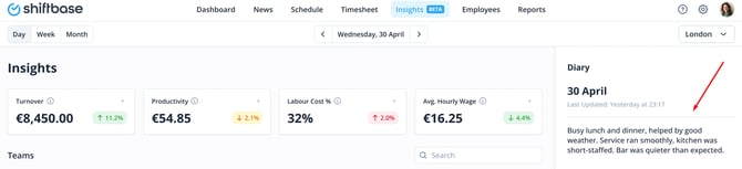 This page replaces what used to be known as the Diary. While you can still write notes and log daily events like before, you now also get real-time business data in the same view.