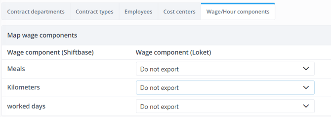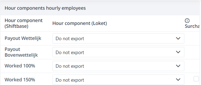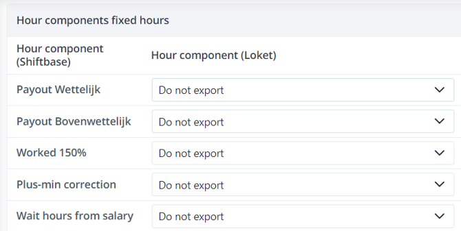 Next, you will also need to link all used hour components within your account to the corresponding component in Loket.nl, to do this, select the corresponding component in Loket.nl behind each hour component.