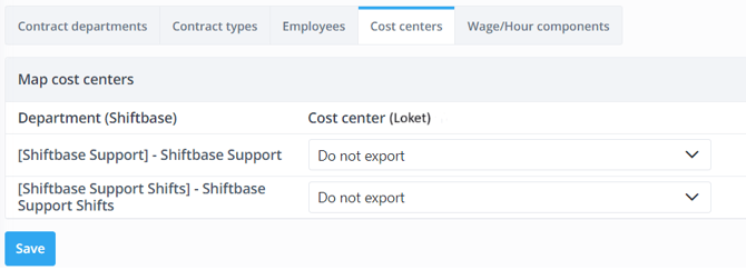 Depending on the setting for determining the contract department of employees, you need to link all cost centers/departments from Loket.nl to a department in Shiftbase. It is also possible to indicate that employees working in certain cost centers/departments should not be imported.