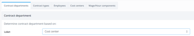Determine contract department: This controls whether the contract department of employees in our system is determined by the employee's department or cost center in Loket.nl.