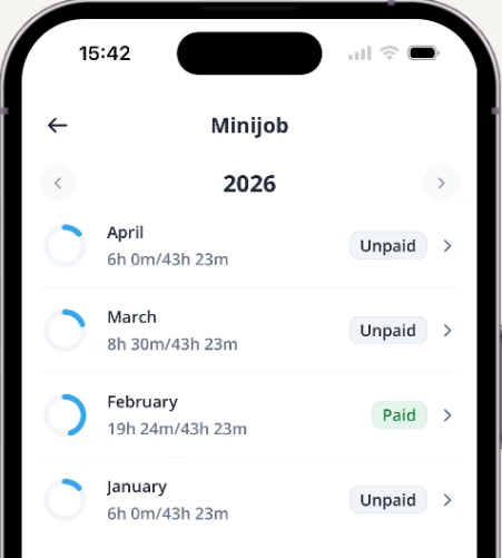 In the payroll report, there are columns for Minijob payout, through which you can see what hours have been paid for which time period.