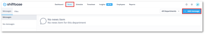 To add a news item go to the News tab. Here you click on the blue button + Add message in the top right corner.