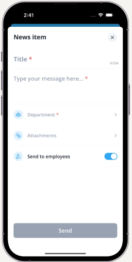 - Attachments: If you'd like, you can attach documents and files to the News item. Drag them into the field or select a file from your device (maximum of 5MB).