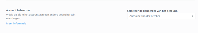 Om dit te doen klik je op het tandwiel icoon aan de rechterbovenkant en navigeer je vervolgens naar de onderkant van de pagina Algemeen. Hier kun je uit de lijst met reeds toegevoegde medewerkers eenvoudig selecteren wie de nieuwe accounteigenaar wordt.