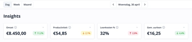 - Omzet: hoeveel inkomsten je team die dag heeft gegenereerd.