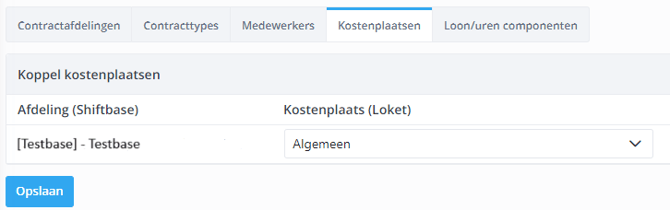 Afhankelijk van de instelling voor het bepalen van de contractafdeling van medewerkers, moet je alle kostenplaatsen/afdelingen uit Loket.nl koppelen aan een Team in Shiftbase. Het is ook mogelijk om aan te geven dat medewerkers die op bepaalde kostenplaatsen/afdelingen werken niet geïmporteerd mogen worden.