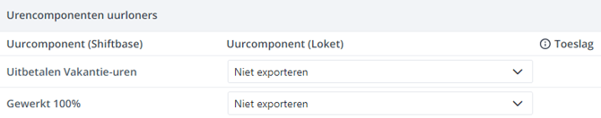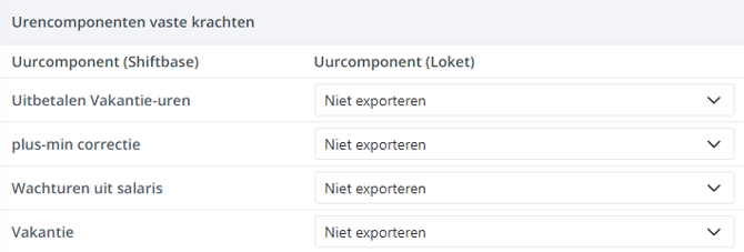Vervolgens dien je ook alle gebruikte urencomponenten binnen je account te koppelen aan het bijbehorende component in Loket.nl, hiervoor vul je achter elk urencomponent het bijbehorende component in Loket.nl.