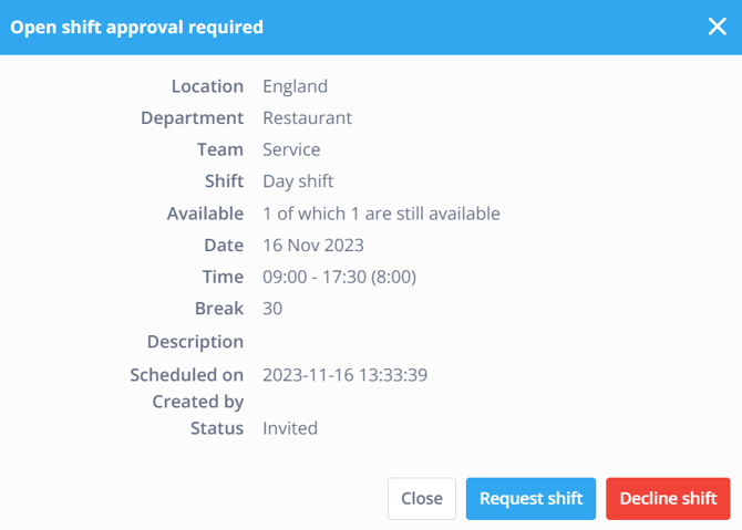 From here you can accept or decline incoming open shifts.