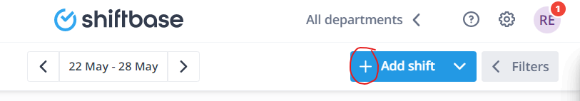 1. Method: In the Schedule tab, click the button + Add shift in the top right corner. A form will appear that allows you to schedule a shift.